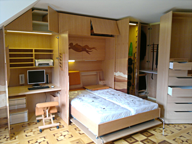 Omara, namenjena za delo, rekreacijo in počitek. Del omare se lahko nadomesti tudi s kuhinjo ali garderobo.